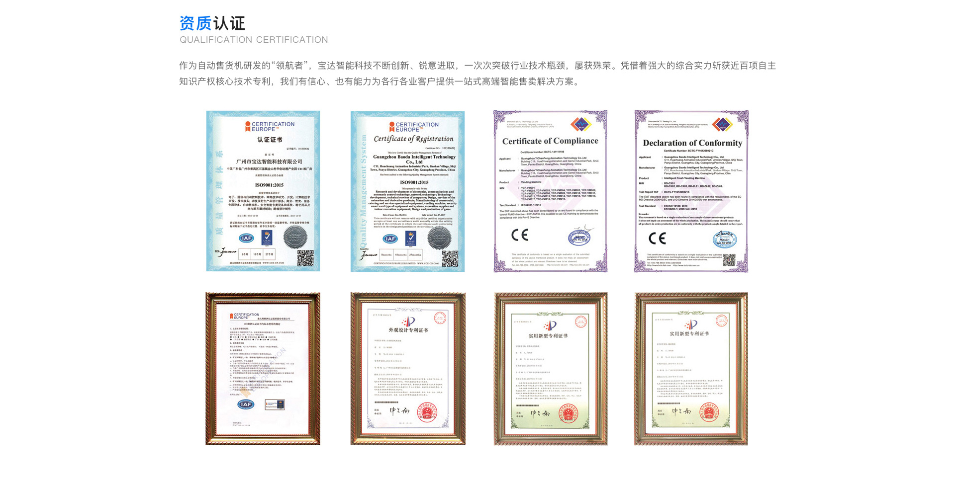 ? ? ? ?公司遵循“用戶第一,顧客至上,互利雙贏”的經營理念,寶達公司擁有完善的運營模式,產品品牌在市場上身受消費者的青睞。寶達智能售貨機在中東、東南亞、南美、非洲、歐洲等市場取得驕人的成績,同時成為多家大型企業的定點供應商。企業已通過ISO標準及CE認證,寶達科技秉承以“市場需求為核心,以結果為導向”,為廣大商戶服務。