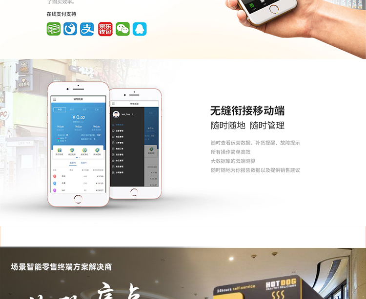 訂購標(biāo)配:制冷、加熱系統(tǒng)+智能防盜門+智能電動取貨門+輕量級機械抓手+15.6寸液晶屏+觸摸屏+安卓3288主板+微信及支付寶支付