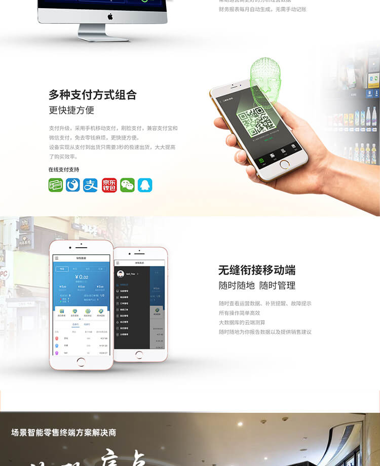 支付系統:微信、支付寶支付、刷臉支付/可定制