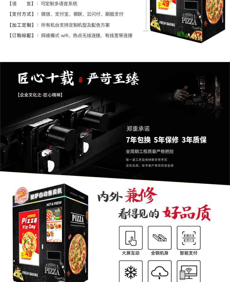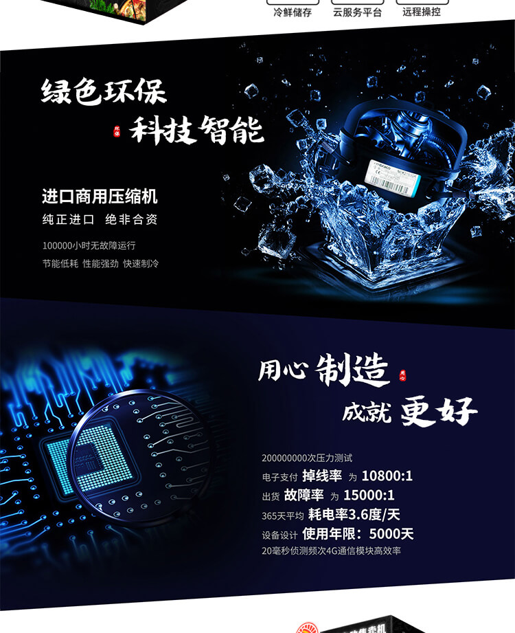 訂購標配:制冷、加熱系統+智能防盜門+智能電動取貨門+輕量級機械抓手+32寸液晶屏+觸摸屏+安卓3288主板+微信及支付寶支付