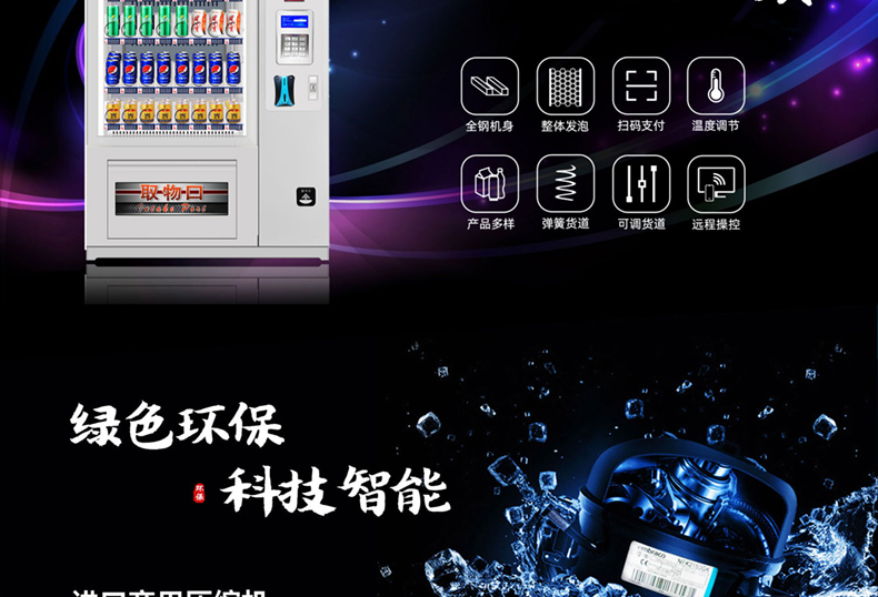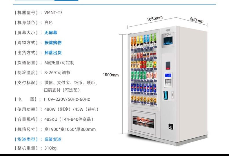 售賣類型:可售賣瓶裝罐裝飲料、香煙、食品等