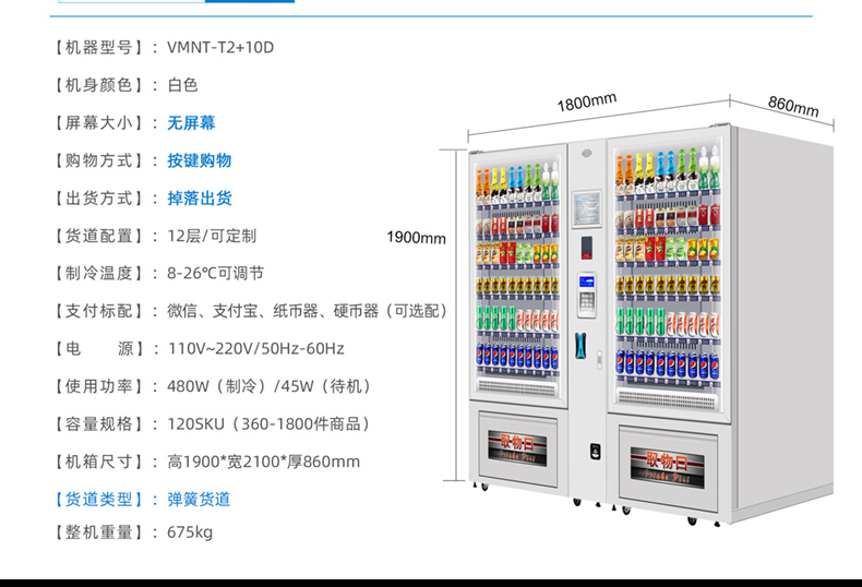 訂購標配:ITL紙幣接收器+硬幣找零器+左柜制冷機組+微信及支付寶支付模塊