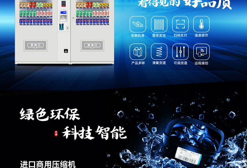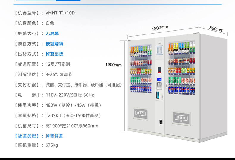 訂購標配:ITL紙幣接收器+硬幣找零器+左柜制冷機組+微信、支付寶支付模塊