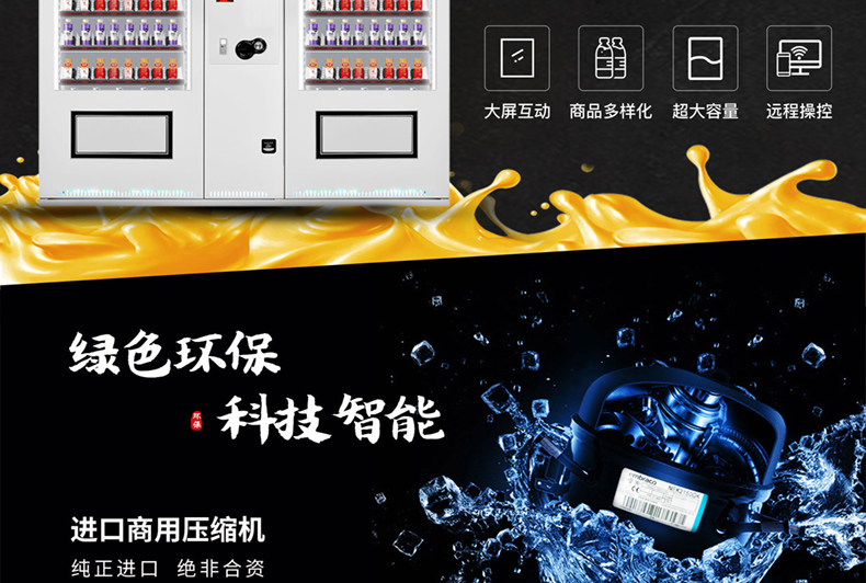 訂購(gòu)標(biāo)配:制冷機(jī)組+22寸液晶觸摸屏+TEI45工控主板+ITL紙幣接收器+紙幣找零器+微信、支付寶支付模塊