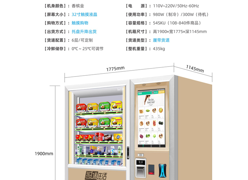 訂購(gòu)標(biāo)配:(0°c~-25°c )制冷機(jī)組+數(shù)碼電子標(biāo)簽+智能防盜門+智能電動(dòng)取貨門+32寸液晶屏+觸摸屏+TEI45主機(jī)+升降梯接貨+微信及支付寶支付