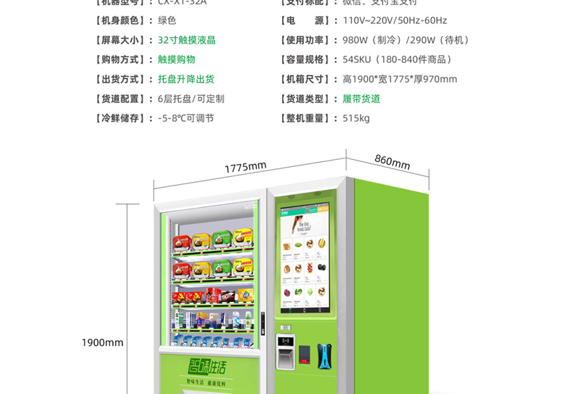 訂購標配:(0°c~-25°c )制冷機組+數(shù)碼電子標簽+智能防盜門+智能電動取貨門+32寸液晶屏+觸摸屏+TEI45主機+升降梯接貨+微信及支付寶支付