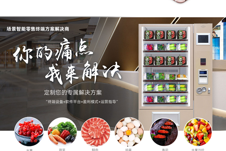 售賣類型:可售飲料 食品 果蔬 盒飯 糧油 肉類 海鮮等生鮮冷鏈商品