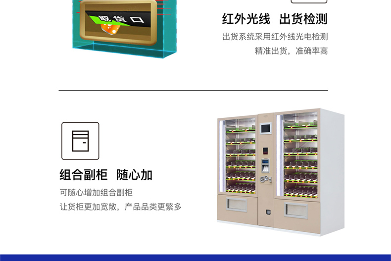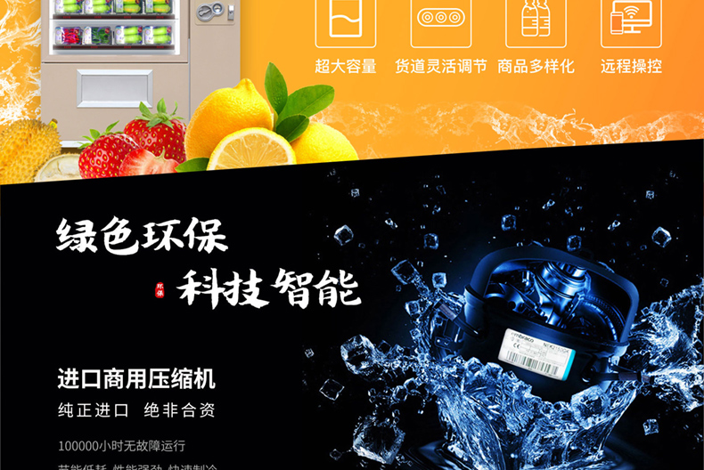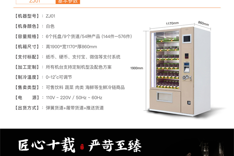 訂購標配:(0~12°c)制冷機組+智能防盜門+智能電動取貨門+安卓工控主板+8寸觸摸液晶屏+微信、支付寶支付+RFID刷卡器
