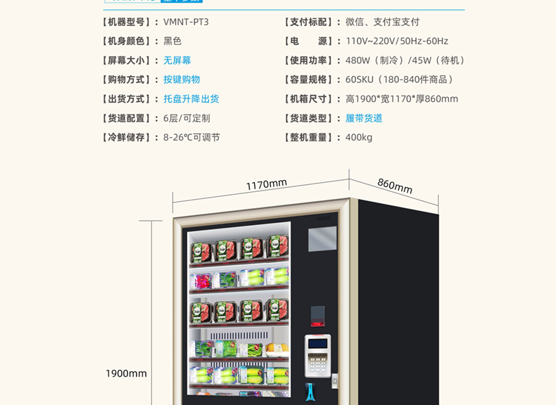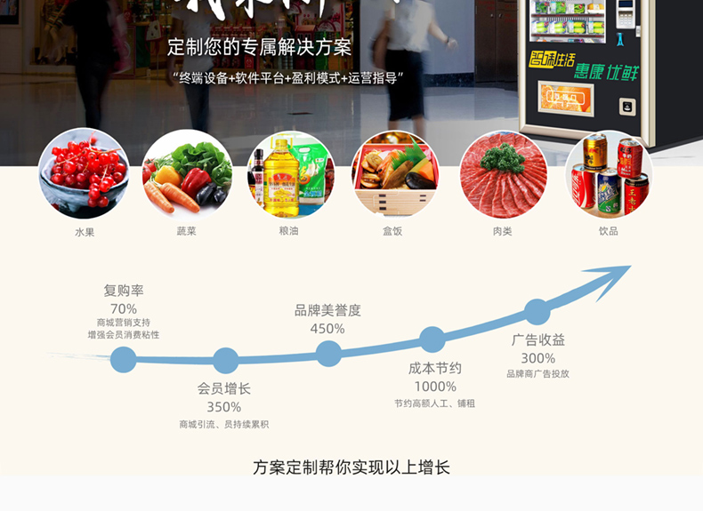 售賣類型:可售飲料 食品 果蔬 盒飯 糧油 肉類 海鮮等生鮮冷鏈商品