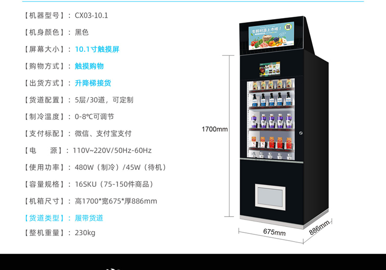 售賣類型:可售飲料 食品 果蔬 盒飯 糧油 肉類 海鮮等生鮮冷鏈商品