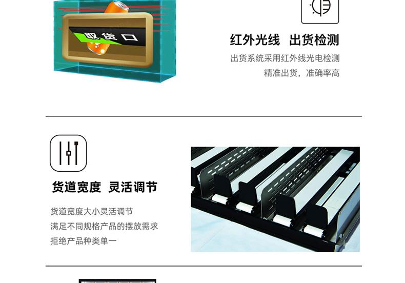 容量規(guī)格:5層,每層5條貨道,履帶式貨道。升降梯出貨。