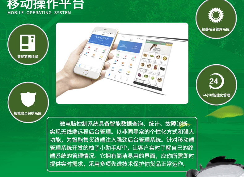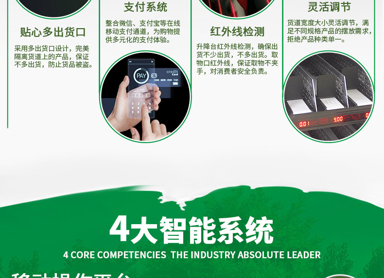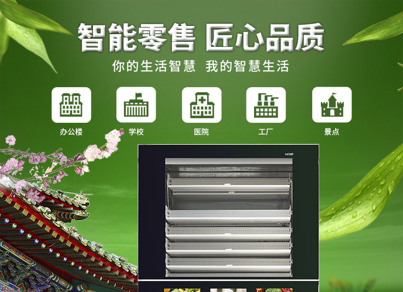訂購標配:(-5~8°c)制冷機組+智能電動取貨門+觸摸屏+安卓主機+微信及支付寶支付
