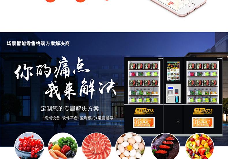 售賣類型:可售飲料 食品 果蔬 盒飯 糧油 肉類 海鮮等生鮮冷鏈商品
