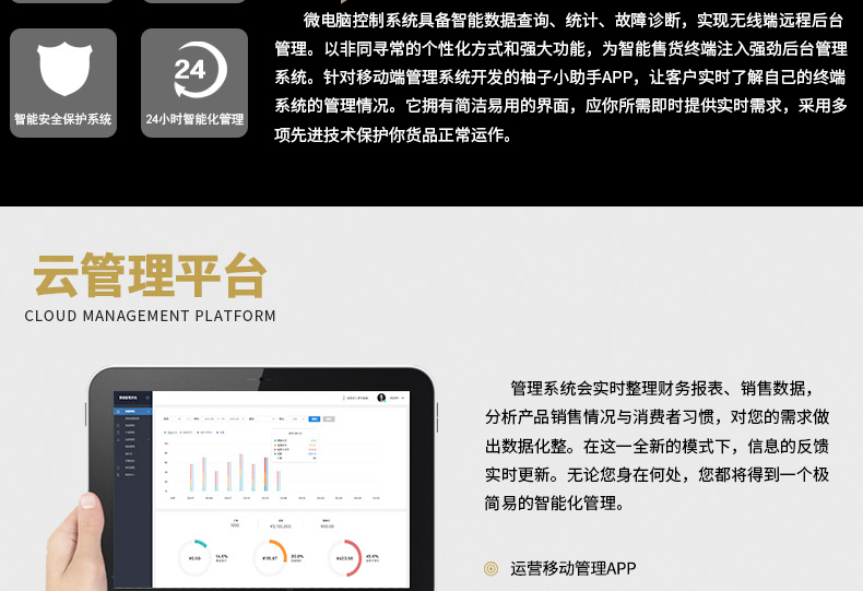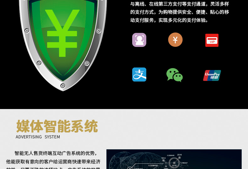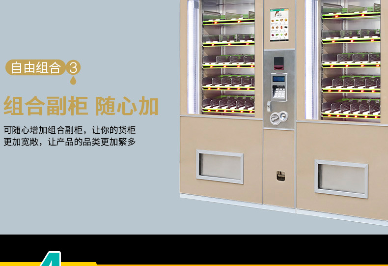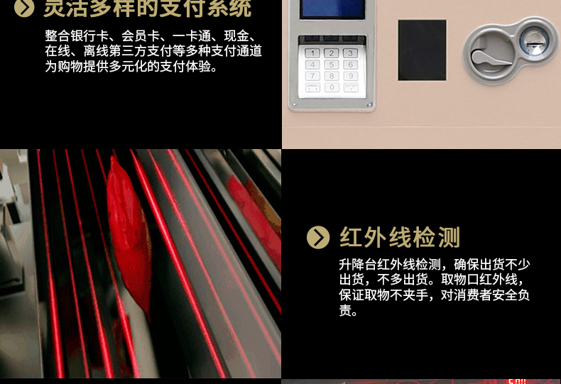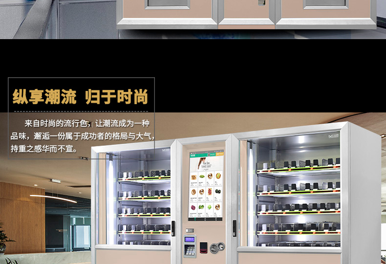 訂購標配:(0~12°c)制冷機組+智能防盜門+智能電動取貨門+安卓工控主板+15.6寸觸摸液晶屏+微信、支付寶支付+RFID刷卡器