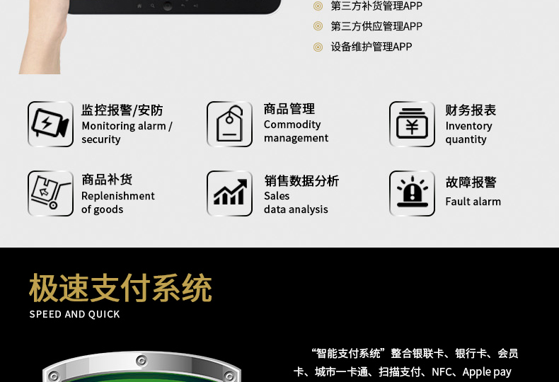 售賣類型:可售飲料 食品 果蔬 盒飯 糧油 肉類 海鮮等生鮮冷鏈商品
