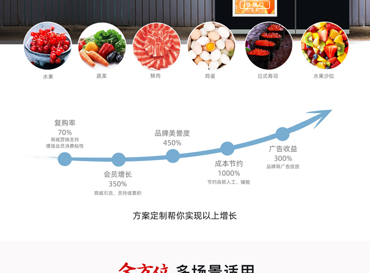 售賣類型:可售飲料 食品 果蔬 盒飯 糧油 肉類 海鮮等生鮮冷鏈商品