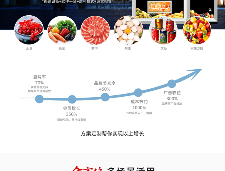 售賣類型:可售飲料 食品 果蔬 盒飯 糧油 肉類 海鮮等生鮮冷鏈商品